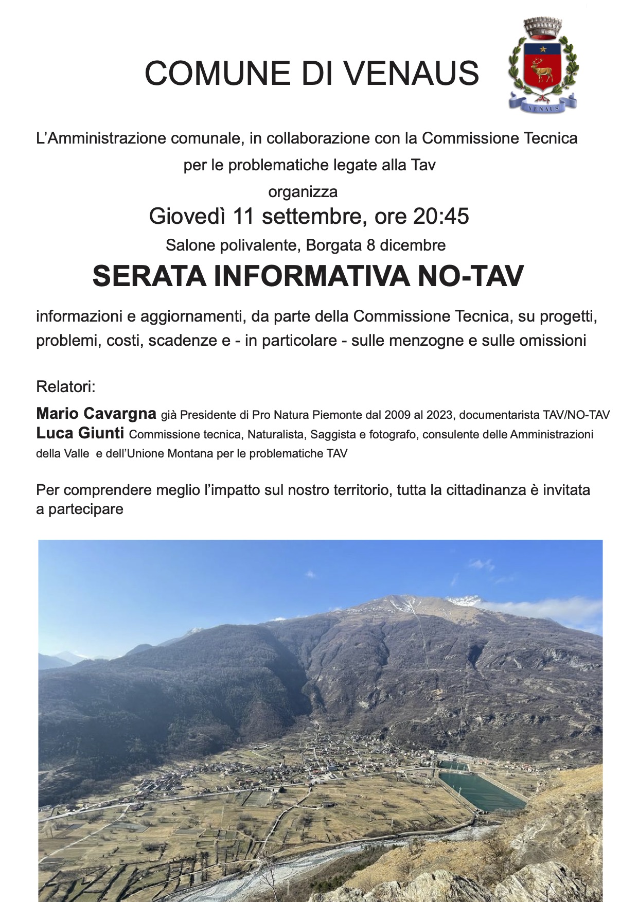 L'Amministrazione comunale , in collaborazione con la commissione Tecnica per le problematiche legate alla tav organizza per