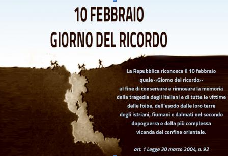 Il Giorno del ricordo è una solennità civile nazionale italiana ISTITUITO con legge 92/20024 , celebrata il 10 febbraio di ogni anno, che ricorda i massacri delle foibe e l'esodo giuliano dalmata.
