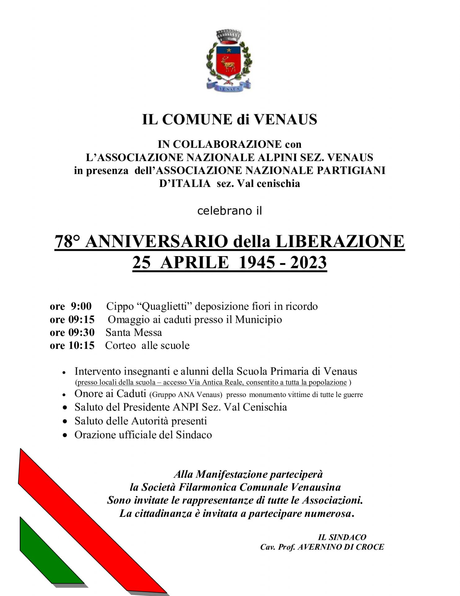 IL COMUNE di VENAUS IN COLLABORAZIONE con L’ASSOCIAZIONE NAZIONALE ALPINI SEZ. VENAUS