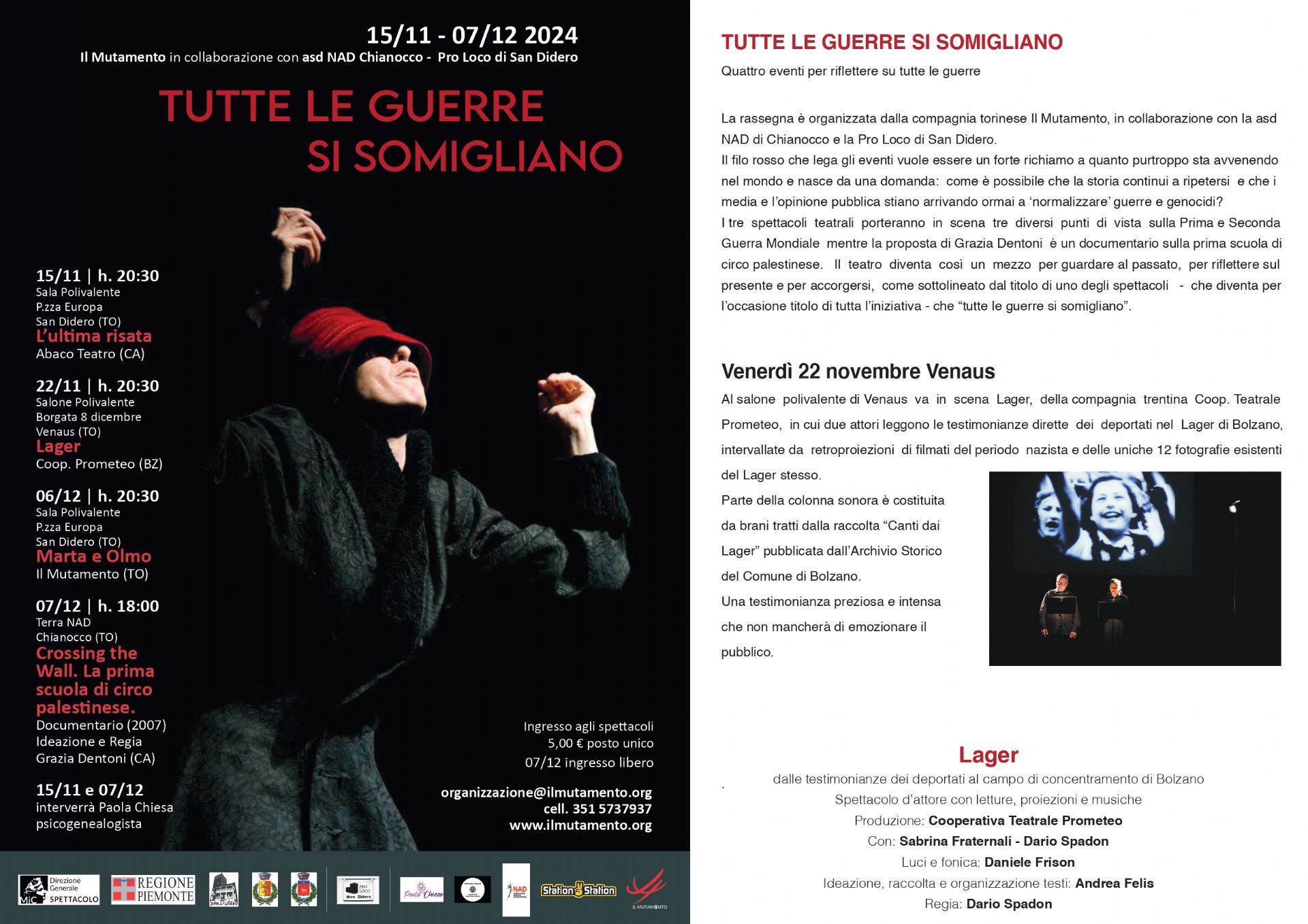 La rassegna è organizzata dalla compagnia torinese Il Mutamento, in collaborazione con la asd