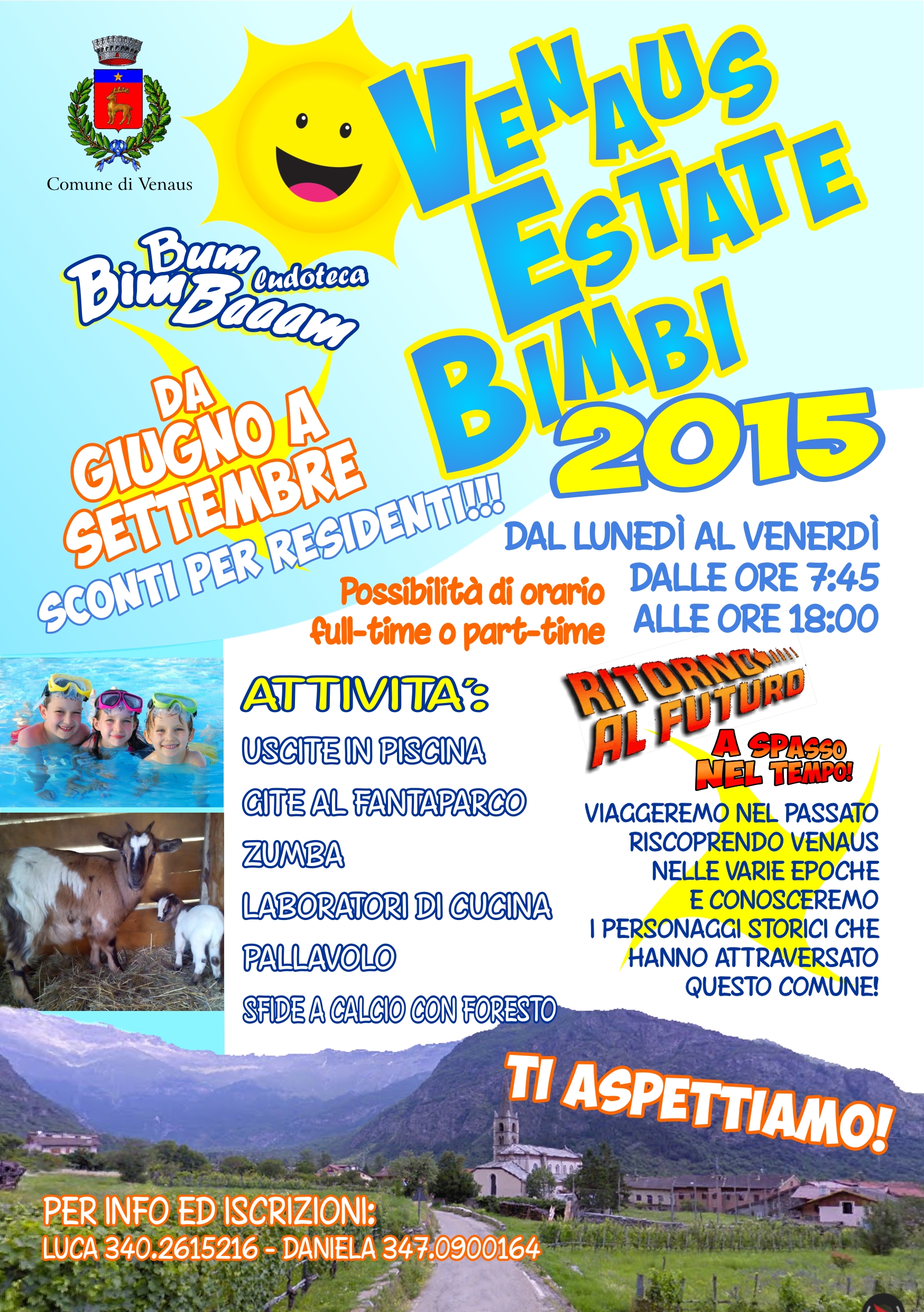 Il tema conduttore di "Venaus Estate Bimbi 2015" sarà " A SPASSO NEL TEMPO " per la stagione 2015 e " RITORNO AL FUTURO " per l'estate 2016 !!!