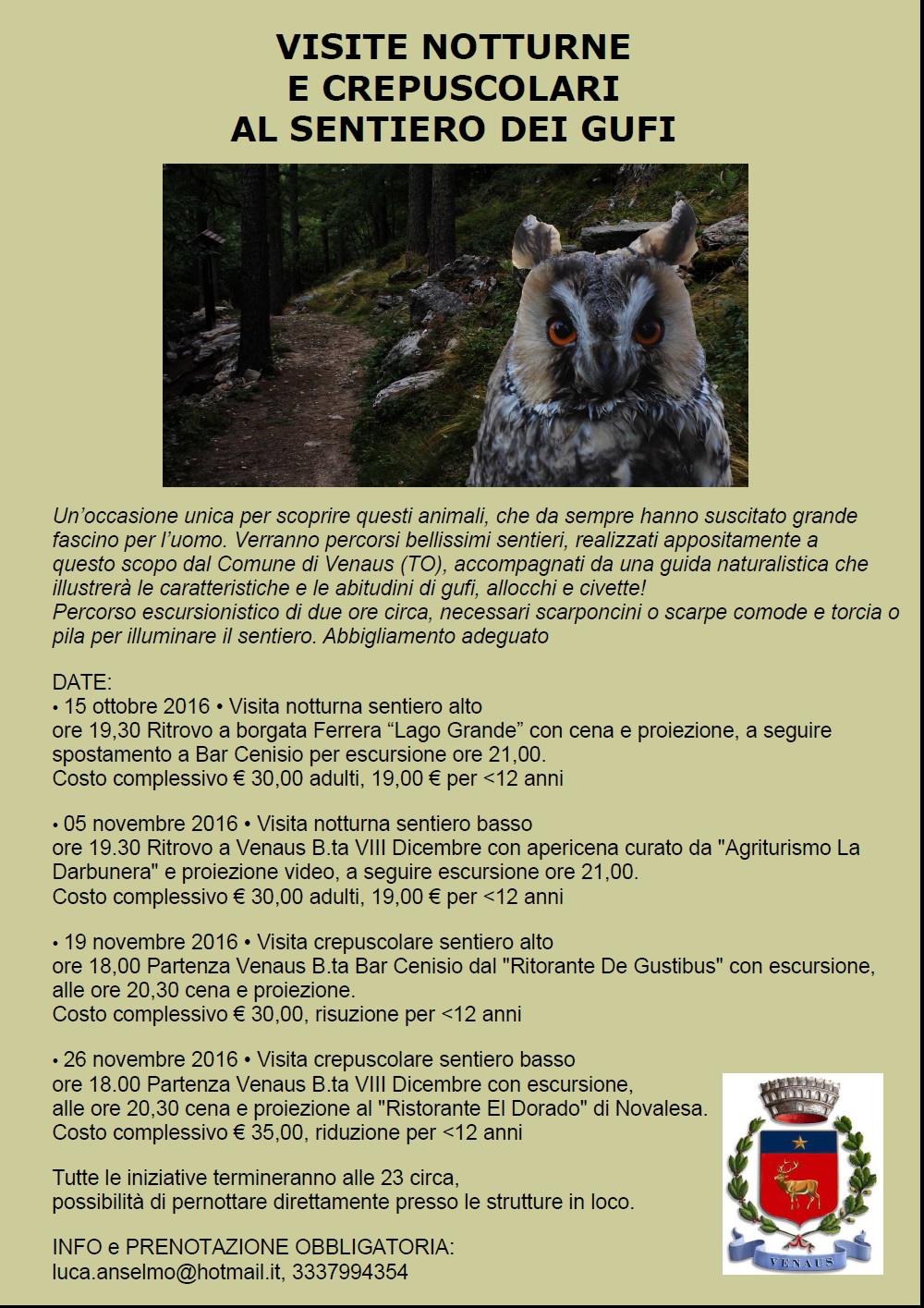 accompagnati da una guida naturalistica che illustrerà le caratteristiche e le abitudini di Gufi, Allocchi e Civette!