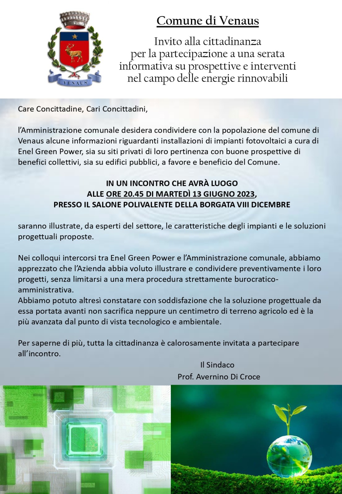 Per condividere informazioni , riguardati le installazioni di impianti fotovoltaici a cura di enel g reen power, sia su siti privati di loro pertinenza con buone prospettive di benefici collettivi, sia su edifici pubblici , a favore e beneficio del comune-
