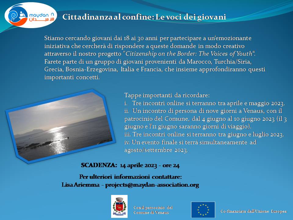 Stiamo cercando giovani dai 18 ai 30 anni per partecipare a un‘emozionante iniziativa che cercherà di rispondere a queste domande in modo creativo attraverso il progetto "Citizenship on the Border: The Voices of Youth", finanziato dal programma Erasmus+ dell'Unione Europea.
