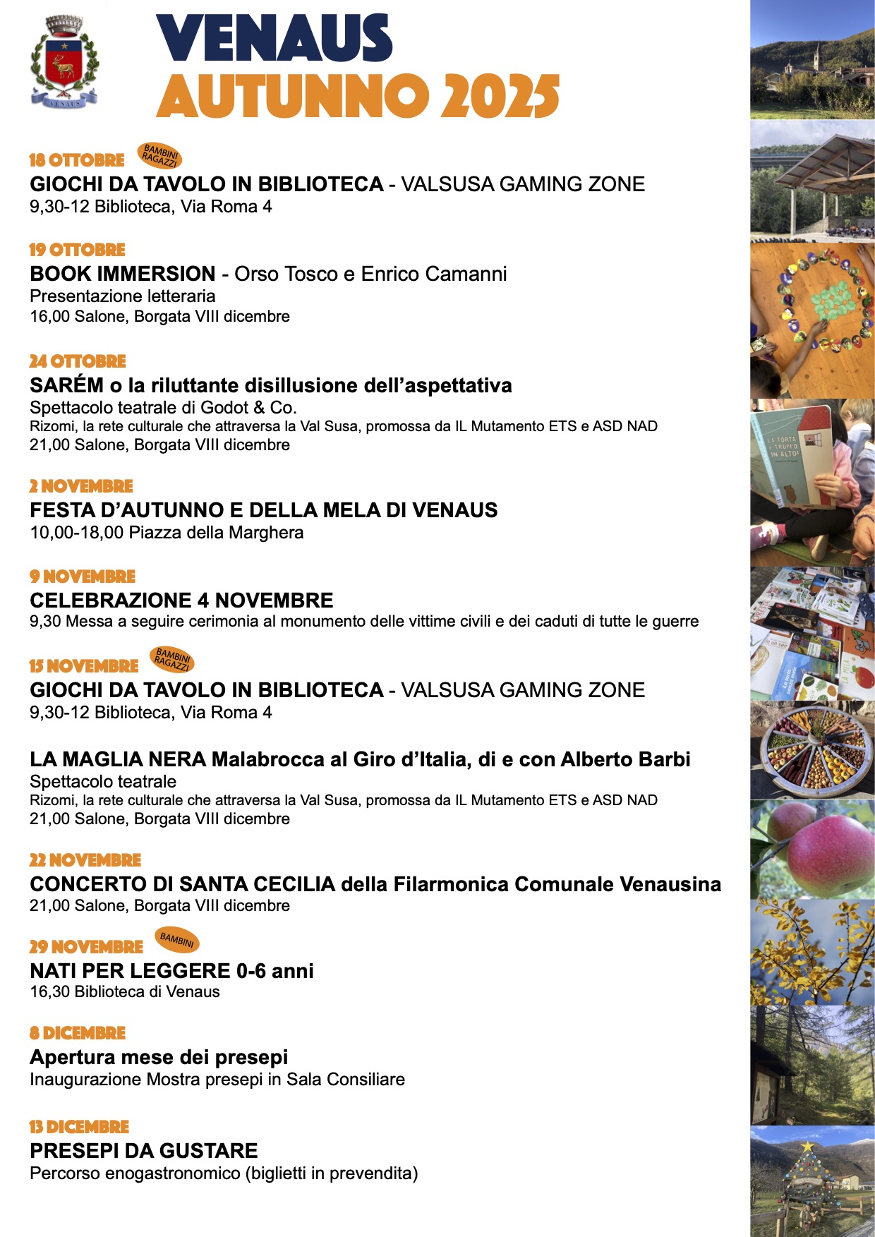in allegato il programma degli eventi previsti per il periodo Ottobre /13 dicembre 2025