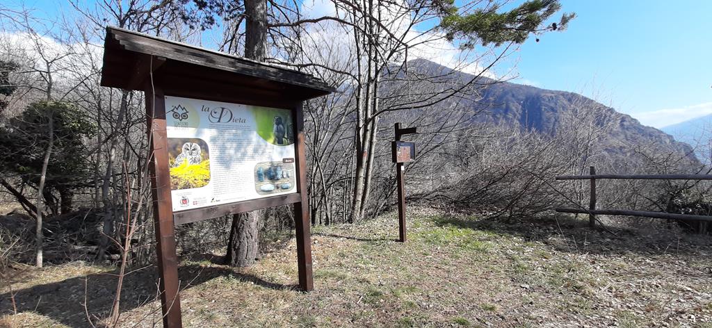Proseguendo, il sentiero entra nel cuore del bosco, tramite la percorrenza di una pista forestale chiusa al traffico veicolare dove il silenzio diventa parte integrante dell’esperienza. È in questo contesto che il Sentiero dei Gufi rivela pienamente la sua vocazione naturalistica, ponendo l’attenzione sul mondo dei rapaci notturni, gli strigiformi, presenza discreta ma fondamentale degli ecosistemi della Val Cenischia, aiutati con le descrizioni delle varie specie presenti in zona con testi chiari e semplici in un percorso autoguidato.